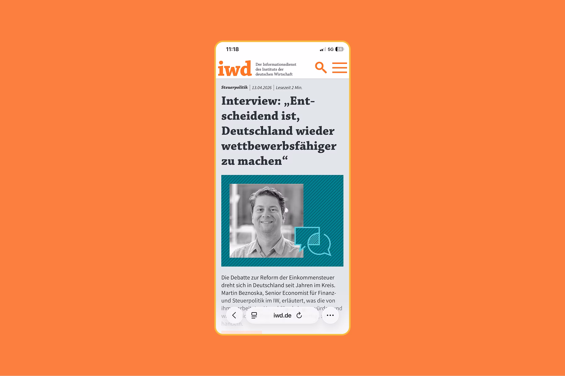 Ob langfristige ökonomische Entwicklung oder kurzzeitiger Trend, ob geopolitisches Ereignis oder regionale Besonderheit – der iwd ordnet wirtschaftliche Zusammenhänge ein, erklärt sie und macht sie transparent. In Zusammenarbeit mit den Wissenschaftlerinnen und Wissenschaftlern des IW präsentiert die Redaktion aktuelle Studienergebnisse und beleuchtet Hintergründe und mögliche Auswirkungen.
