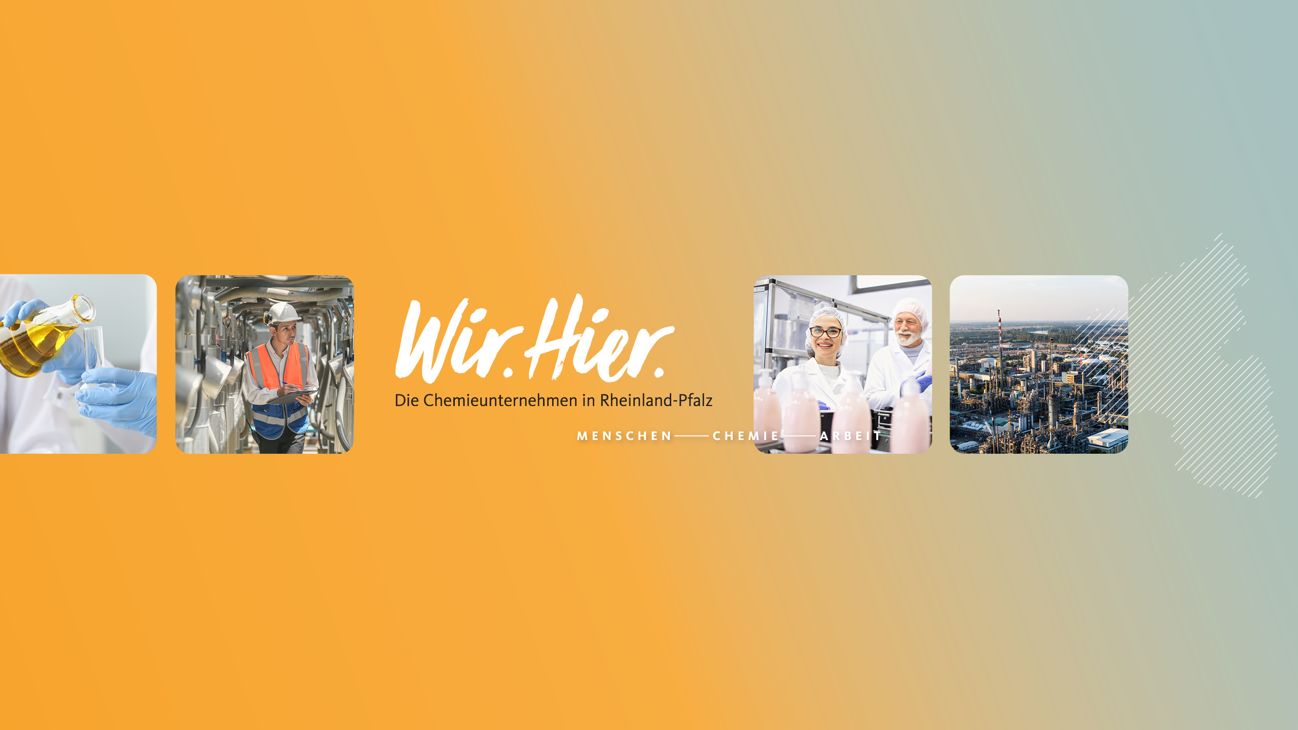 Wir machen zusammen mit dem Auftraggeber Chemieverbände Rheinland-Pfalz das Herz der Branche sicht- und erlebbar: Das Videoformat „Wissenschaffer“ liefert chemische Lifehacks, der „ChemieCheck“ bringt Themen speziell für die Gen Z auf den Punkt. Inzwischen ausgelaufene Formate wie der Generationen-Talk „Oroo(n)sch“ oder der Podcast „Wir.Hear.“ waren weitere spannende Module, mit denen wir den Stimmen der Beschäftigten aus Rheinland-Pfalz Stärke und Raum verliehen haben. Mit Wir.Hier. verbinden wir Menschen, Ideen und Zukunft und machen damit das Wir im Hier wortwörtlich erlebbar und nicht zuletzt verständlich.